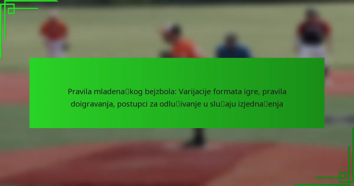 Baseball za mlade obuhvaća niz varijacija formata igre prilagođenih različitim dobnih skupinama i ligama, fokusirajući se na razvoj igrača kroz specifične strukture inninga, pravila sudjelovanja i trajanje igara. Dodatno, pravila doigravanja definiraju kvalifikacije timova i strukture igara, dok postupci za razrješavanje izjednačenja pružaju metode za rješavanje igara koje završe izjednačeno. Razumijevanje ovih elemenata ključno je za igrače, trenere i roditelje koji se snalaze u svijetu baseballa za mlade.
