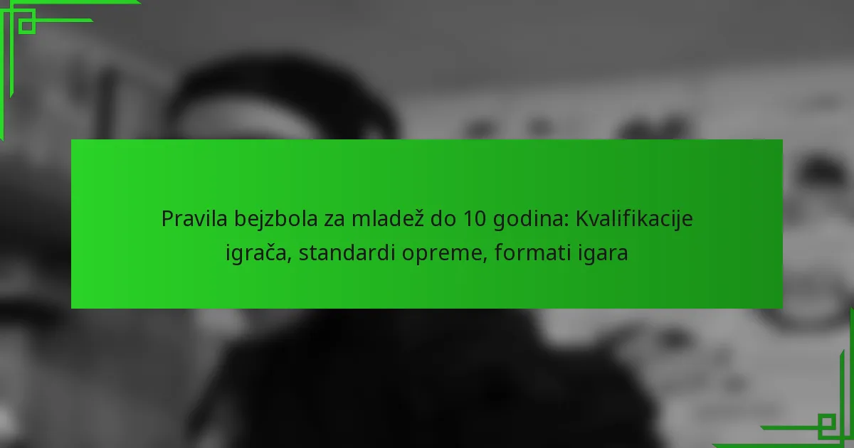 Pravila bejzbola za mladež do 10 godina: Kvalifikacije igrača, standardi opreme, formati igara