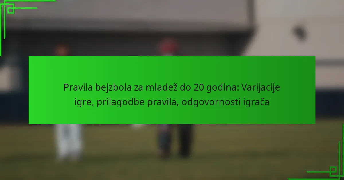 Ključne varijacije igre za baseball mladeži 20u uključuju razlike u dimenzijama terena, pravilima igre i prilagodbama za sigurnost igrača. Ove varijacije osmišljene su kako bi se poboljšao razvoj igrača, a istovremeno osigurale natjecateljsko i ugodno iskustvo.