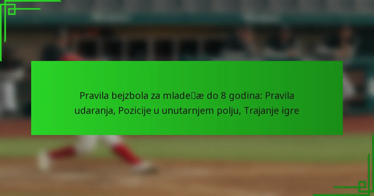 Pravila 8u bejzbola značajno se razlikuju od pravila za starije dobne skupine, fokusirajući se na razvoj vještina i sigurnost. Ključne razlike uključuju pravila udaranja, pozicije u infieldu i trajanje igre, sve prilagođeno sposobnostima i razumijevanju igre mlađih igrača.